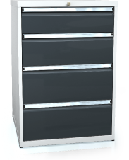 Zásuvka 3636E, 100% výsuv Fulterer, nosnost 180 Kg. Korpus je vybaven systémem centrálního uzamykání cylindrickým zámkem s integrovanou funkcí blokace vysunutí více zásuvek - ochrana proti převrácení. Spodní část korpusu je opatřena otvory pro možnost ukotvení k podlaze. Kotvení doporučujeme v případě uvažovaného zatěžování na hranici maximální nosnosti.