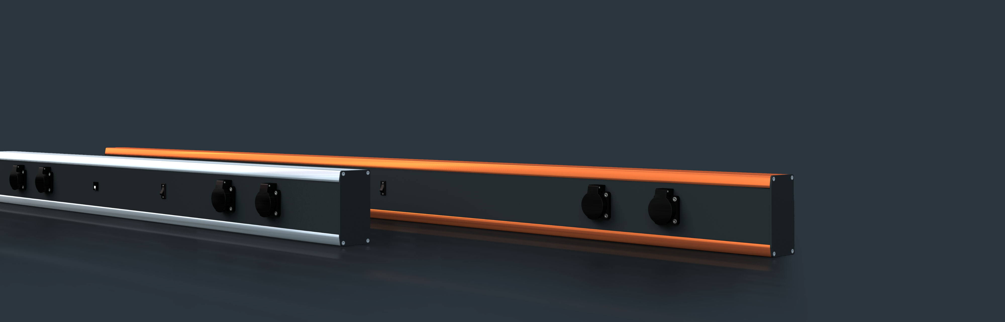 ESD energokanál 1500 2U vybaven - 4 ks průmystová zåsuvka na 230V, 1ks jistič, vypínač energokanálu