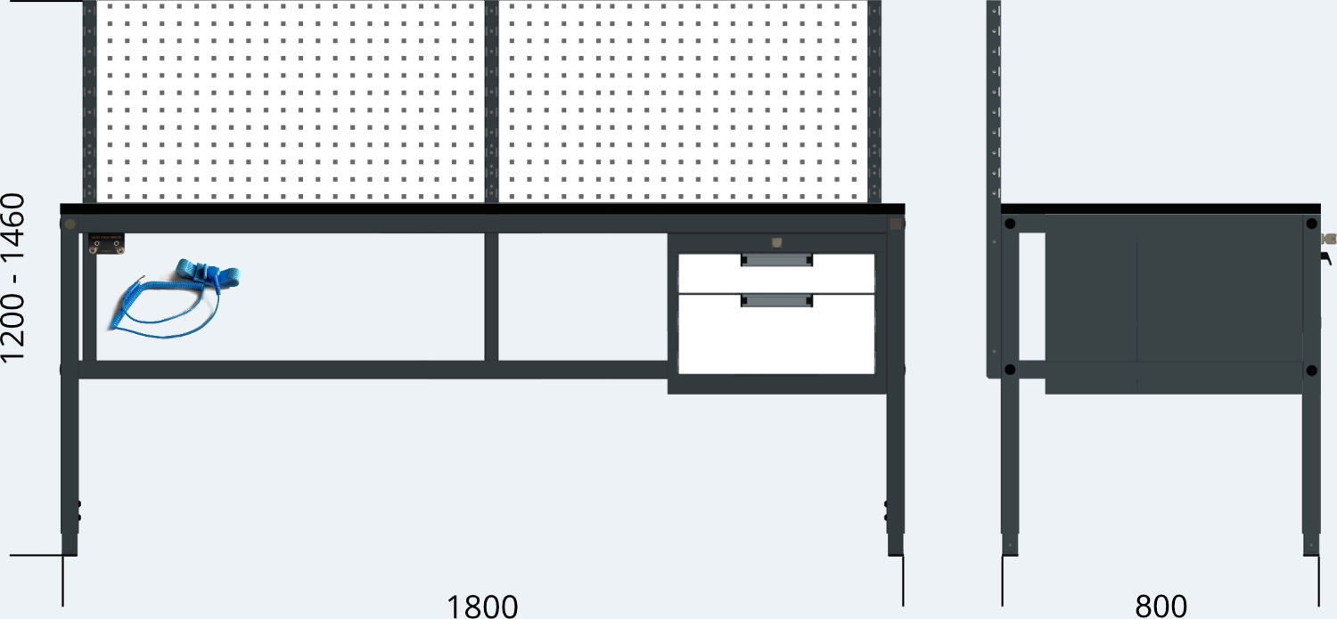 Pracovní stůl ALGERS - 1220 - 1460 x 1800 x 800 - kontejner - perfo