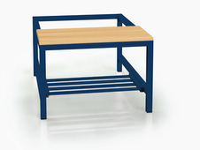 Předlavička pro šatní skříňku s bukovými latěmi - se sklopným roštem. Konstrukce rámu je svařena z ocelových profilů 30 x 30 mm. Nohy podstavce jsou standardně vybavené plastovými kluzáky.