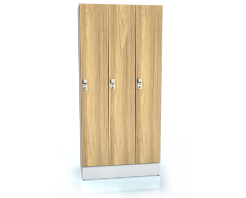 Premium šatní skříňka s naloženými lamino dveřmi, sokl v = 160 mm, šíře oddělení 300 mm, počet oddělení - 3, počet dveří v oddělení - 1, v odd. 270 mm od víka police, na spodní straně police tyč se třemi plast. háčky.
